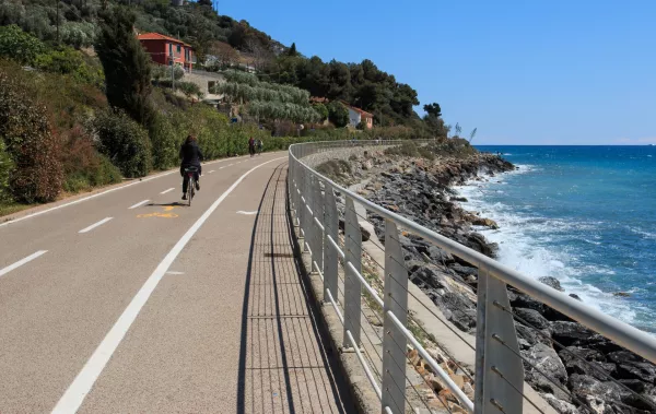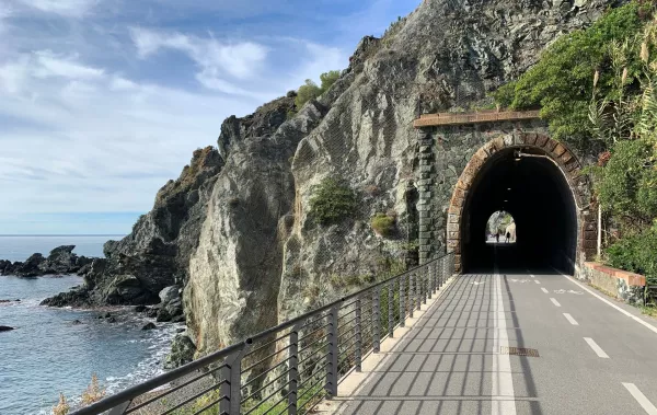 The route gradually rises along a quiet road surrounded by Mediterranean vegetation, offering unforgettable views over the Gulf of Tigullio. With olive trees, terraces, and open sea framing the ride, the climb toward San Lorenzo della Costa showcases the natural beauty that defines this promontory. From here, the path leads to San Rocco di Camogli, one of the most striking viewpoints along the coast. The terrace opens over the Gulf of Paradise, revealing a sweeping panorama that extends all the way toward the western Riviera.