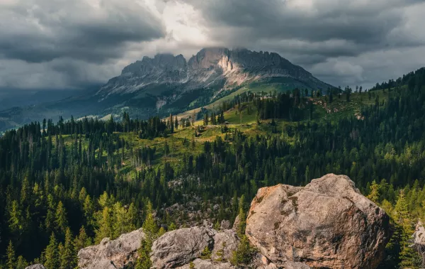 Your private driver and expert local guide will meet you at your hotel at 8:30 a.m. From there, you'll set off toward Lake Carezza, a jewel nestled in the Val d’Ega. Surrounded by dense fir forests and reflecting the dramatic peaks of the Latemar mountain group, this glacial lake has captivated visitors for centuries. Take time to walk along the lakeside path and enjoy the serenity of this legendary spot, known in Ladin legends as the "Rainbow Lake" for its stunning, iridescent colors.