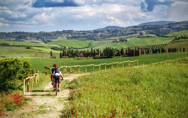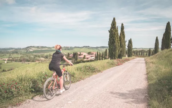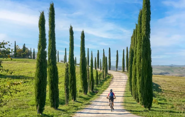 Departing from Florence, you travel comfortably toward the Chianti region, where vineyards, olive groves, and rural landscapes define the scenery. Accompanied by an expert local guide, you cycle along panoramic routes that showcase the essence of Tuscan winemaking country, stopping to appreciate the landscape and its rhythms.