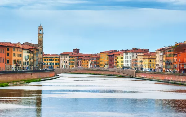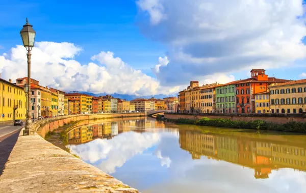 Lungarni, the picturesque streets along Pisa's Arno River, conjure a serene, romantic ambiance. Framed by elegant buildings and arched bridges, this charming riverside setting offers unforgettable sunset views and a glimpse into the heart of Pisa's timeless beauty.
