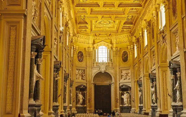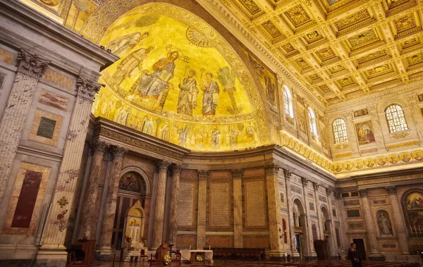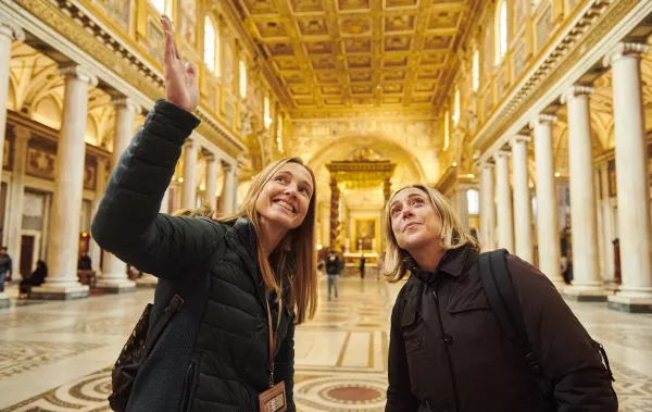 The tour proceeds to St. Mary Major, one of the finest examples of early Christian devotion. Here, your guide leads you through a basilica renowned for its shimmering 5th-century mosaics, ornate ceilings, and important Marian relics, illustrating its importance in both religious and artistic history.