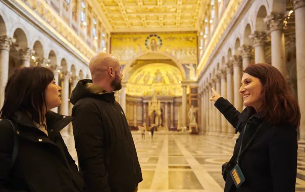 The experience begins at St. John Lateran, the oldest and highest-ranking basilica in Rome and the official cathedral of the Pope. As you walk through its monumental interior, your guide explains its central role in Christian history, highlighting the statues of the Apostles and the significance of the Holy Door, opened only during Jubilee years.