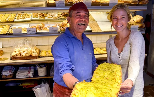 Visit one of the most famous markets in the city in Campo de’ Fiori, where you will have the chance to discover and taste delicious local products. Stop at one of the oldest bakeries in Rome and try some local pastries and pizza al taglio (pizza by the slice) with typical Roman ingredients.