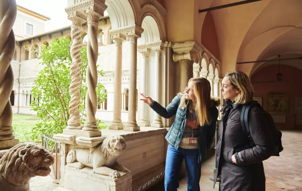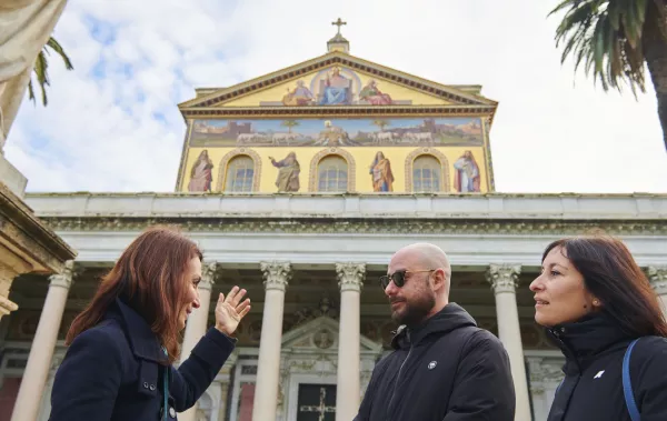 The journey continues to San Sebastiano fuori le Mura, where you will descend into the ancient Catacombs of San Sebastiano on a guided group visit. Walking through these early Christian burial sites is a moving experience, a testament to the resilience of faith.