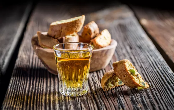 Once the cooking is complete, you sit down to enjoy the meal you have prepared. The gnocchi are served with Italian wine, followed by a classic dessert pairing of cantucci and vin santo, offering a sweet and traditional conclusion to the experience.