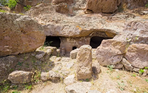 One of Sardinia’s most significant pre-Nuragic burial sites, Montessu Necropolis features a vast complex of Domus de Janas (Fairy Houses) carved into the rock over 5,000 years ago. These ancient tombs provide a fascinating glimpse into the funerary rituals and beliefs of Sardinia’s earliest civilizations.