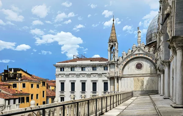 Begin in St. Mark’s Square, the beating heart of Venice, where your guide will introduce you to the Basilica’s dazzling golden mosaics and architectural splendor. With special access, step onto the Loggia dei Cavalli, a privileged viewpoint overlooking the square, and admire the legendary Pala d’Oro, a masterpiece of Byzantine goldwork adorned with precious gems.