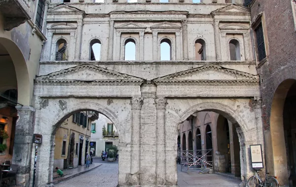 Porta Borsari is an ancient Roman gateway that once marked the main entrance to Verona. Dating back to the 1st century AD, its elegant white limestone façade and arched openings stand as a testament to the city's Roman origins and strategic importance.
